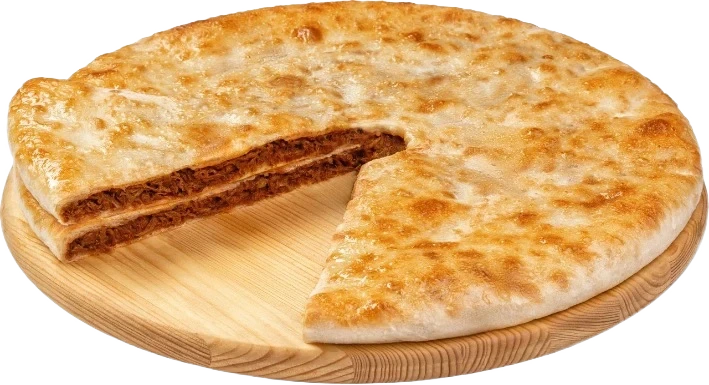 Сочный фирменный пирог из отборного мраморного мяса, томленого несколько часов в духовом шкафу с добавлением соуса и специй. Нежный и ароматный вкус с легкой перчинкой в традиционном тесте